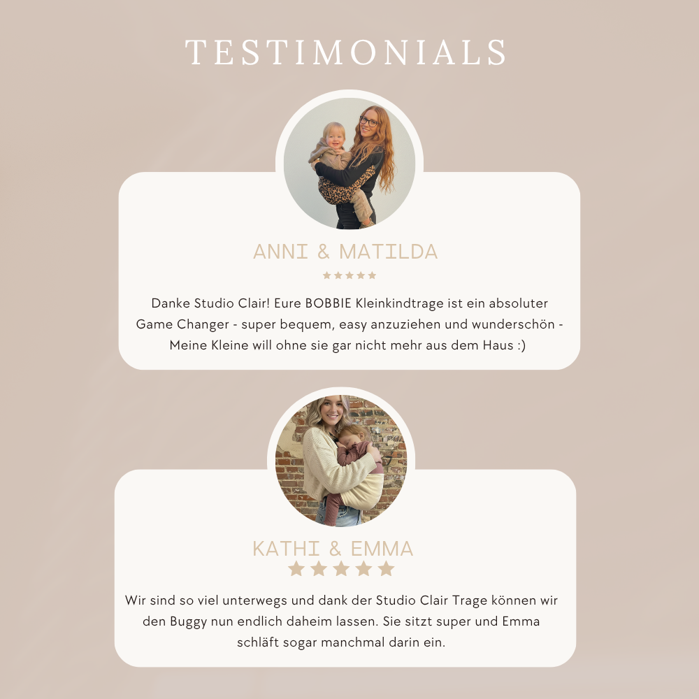 Seitdem wir die Bobbie-Trage haben bleibt der Buggy immer öfter daheim. Sie ist so bequem und stabil, dass ich unsere Tochter problemlos länger tragen kann. Absolute Empfehlung!