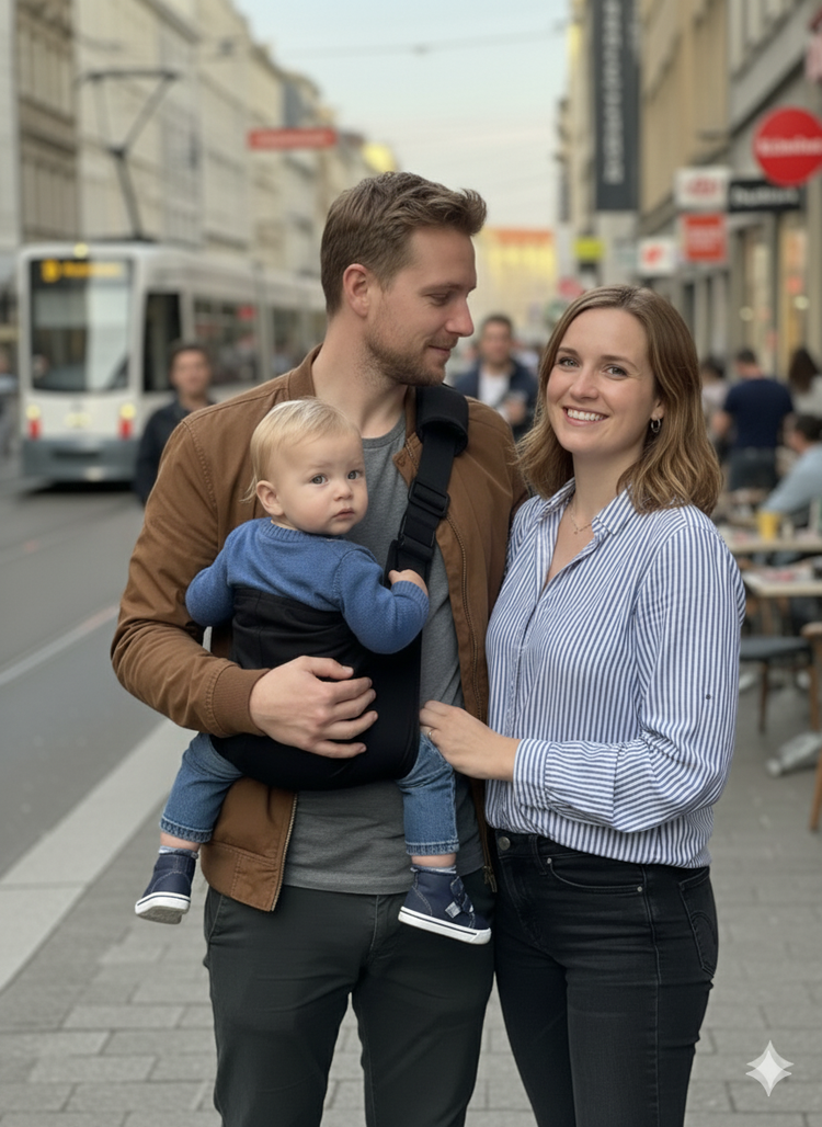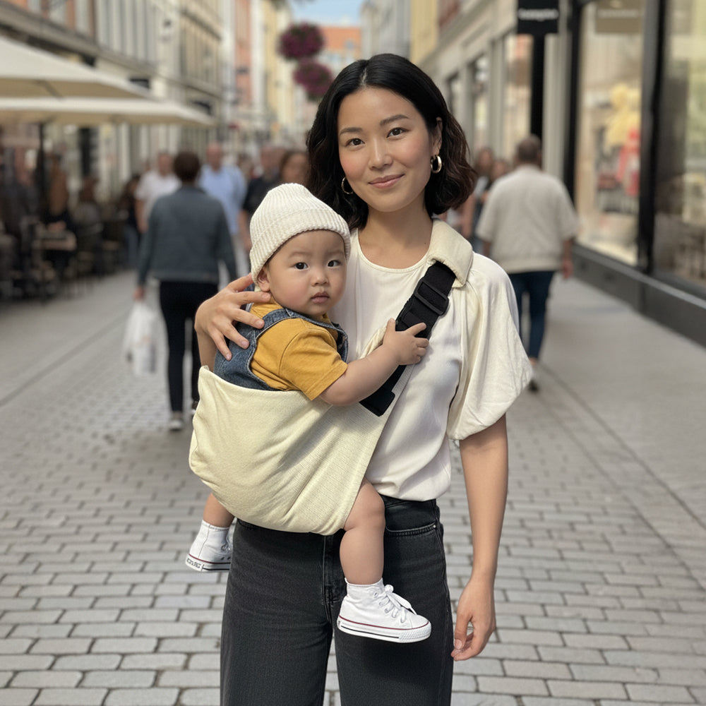 Nähe für dein Kind, Freiheit für dich - kompakt & stilvoll, ganz ohne Nackenschmerzen.